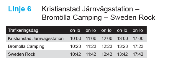 Tidtabell till och från Sweden Rock